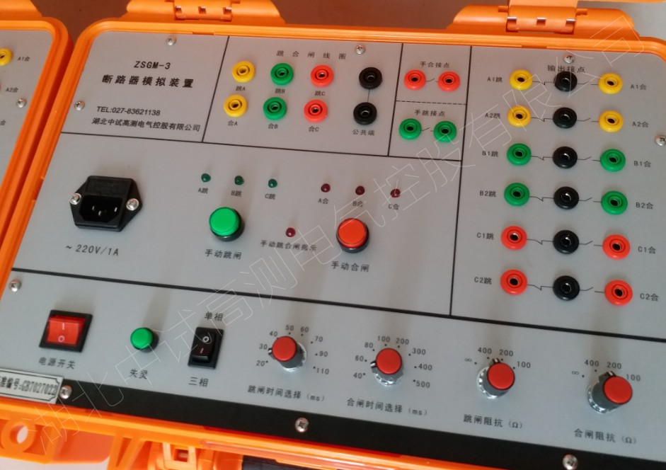 上述各项完成后,真空断路器的三相灭弧室均应经受极间工频耐压42kV历时1min的试验,以检查灭弧室的真空度是否符合要求。如耐压不合格则灭弧室不能起作用,耐压低于38kV则说明该灭弧室已经漏气,需更换新灭弧室。
