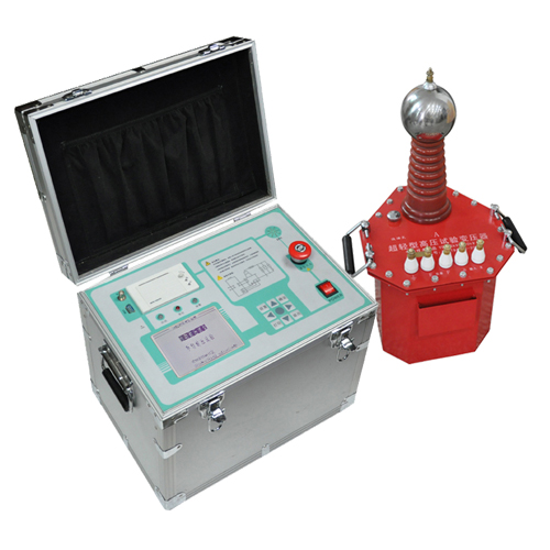 根据《预规》要求:35kV变压器的定期试验电压值按部分交换绕组电压值,即72kV考虑,交接试验电压值按全换绕组考虑,即85kV。按上述计算公式I=UWCX=72×103×314×7000×10-12=158×10-3A P=100×103×158×10-3=15.8kVA,选择100kV原因是考虑到35kV系统的其他高压设备也可使用。(电流和电压互感器为72kV,少油断路器为95kV,绝缘子为100kV,阀式避雷器为50kV,隔离开关为95kV)。