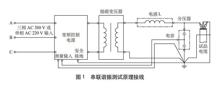 根据串联谐振原理,利用励磁变压器激发串联谐振回路,调节变频控制器的输出频率,使回路电L和试品电缆串联谐振,中试控股谐振电压即为加到试品上的电压,基本原理如图1所示。