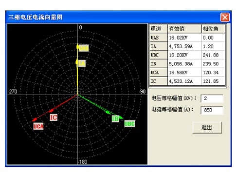 2、可直观显示三相电压、电流向量图,并智能判别三相四线96种、三相三线48种计量装置的接线结果。
