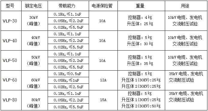 ZSVLF-30KV 40KV 50KV 60KV 80KV / 0.1Hz 超低频高压发生器适用于:交联聚乙烯绝缘电力电缆的耐压试验 / 水力发电机和大型发电机的耐压试验。0.1Hz超低频绝缘耐压试验实际上是工频耐压试验的一种替代方法。尤其在对大型发电机、电缆等试品进行工频耐压试验时,发挥着明显巨大的作用,输出额定电压:30KV,40KV,50KV,80KV,90KV