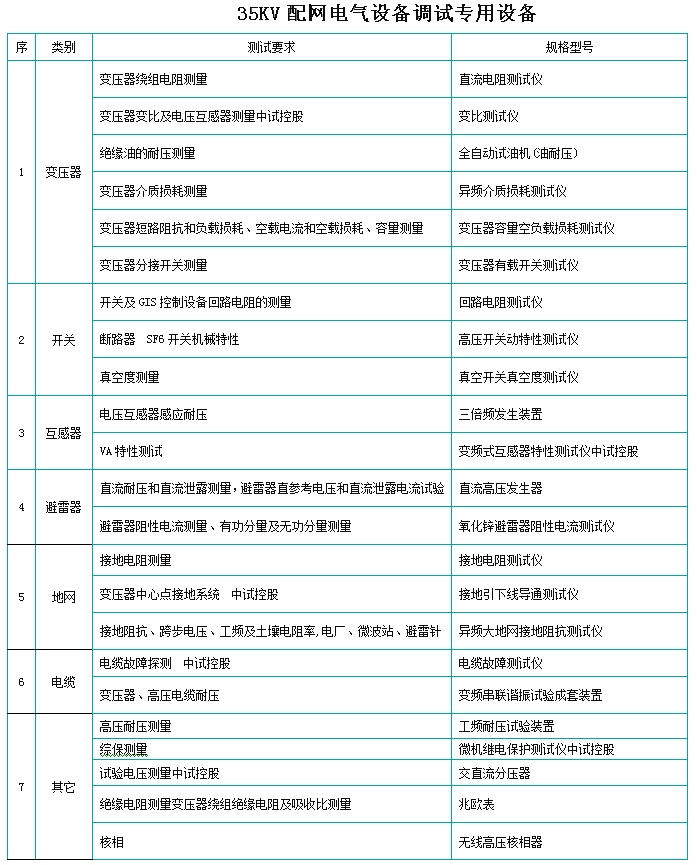 35KV配网电气设备调试专用设备、电气设备调试步骤如下: