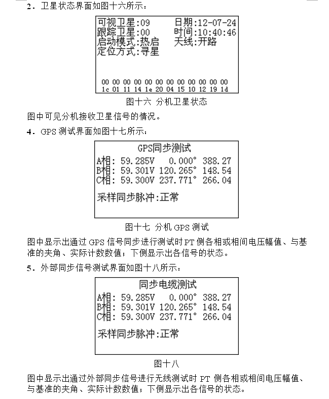 测试结果数据包括:PT侧A相电压幅值(由分机传来),B相电压幅值(由分机传来),C相电压幅值(由分机传来),Wh侧A相电压幅值(由主机测得),Wh侧B相电压幅值(由主机测得),Wh侧C相电压幅值(由主机测得),A相PT侧和Wh侧之间的角差,B相PT侧和Wh侧之间的角差,C相PT侧和Wh侧之间的角差;A相PT侧和Wh侧之间的比差,B相PT侧和Wh侧之间的比差,C相PT侧和Wh侧之间的比差;A相PT侧和Wh侧之间的综合误差及化整结果,B相PT侧和Wh侧之间的综合误差及化整结果,C相PT侧和Wh侧之间的综合误差及化整结果。测试过程会自动计数,从0开始,当累计次数满60次会自动停止,显示出测试结果屏;在测试过程中如果发现有个别异常数据,那么仪器会自动屏蔽异常数据,当连续出现异常数据时,仪器将终止测试,再从0开始计数。