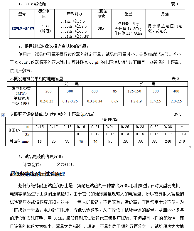 0.05Hz(推荐使用)、0.02Hz(升压过程较慢)、0.01Hz(升压过程很慢,10~40分钟,适合10公里以上电缆),说明书上所说的带载能力是理论值,现场时10KV电缆长度可达到3-20公里。