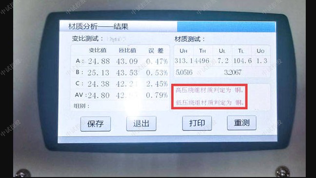 变压器材质分析仪:多功能测量仪器,相当于往常四种测试仪器:即变压器材质分析仪+有源变压器容量测试仪+变压器特性参数测试仪+变压器直流电阻测试仪。它可对多种变压器的材质、容量、型式、空载电流、空载损耗、负载损耗、阻抗电压、直流电阻等一系列工频参数进行精密的测量。